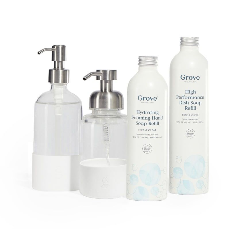 I’ve been trying to do this as part of my daily life for years, but let’s really take this week and try to eradicate plastic from my house. One of my excuses was that most of my plastic usage is recycled. My recycling bin is always more full than my garbage bin so I guess that means everything is okay. But then when I partnered with Grove, they gave me all of this helpful information and I learned that only 9 percent of all plastic is actually recycled in the US, no matter how much you’re putting in the recycling bin. That just made me feel like, I’m trying to do the right thing with recycling, but then how do I know that it’s even getting recycled? That was really something that was eye-opening. I have to do better and do my part. How can [me] eradicating plastic change anything? If everybody does it, then the world can change. So I went through my house and saw that I’m not doing as well as I could be doing.