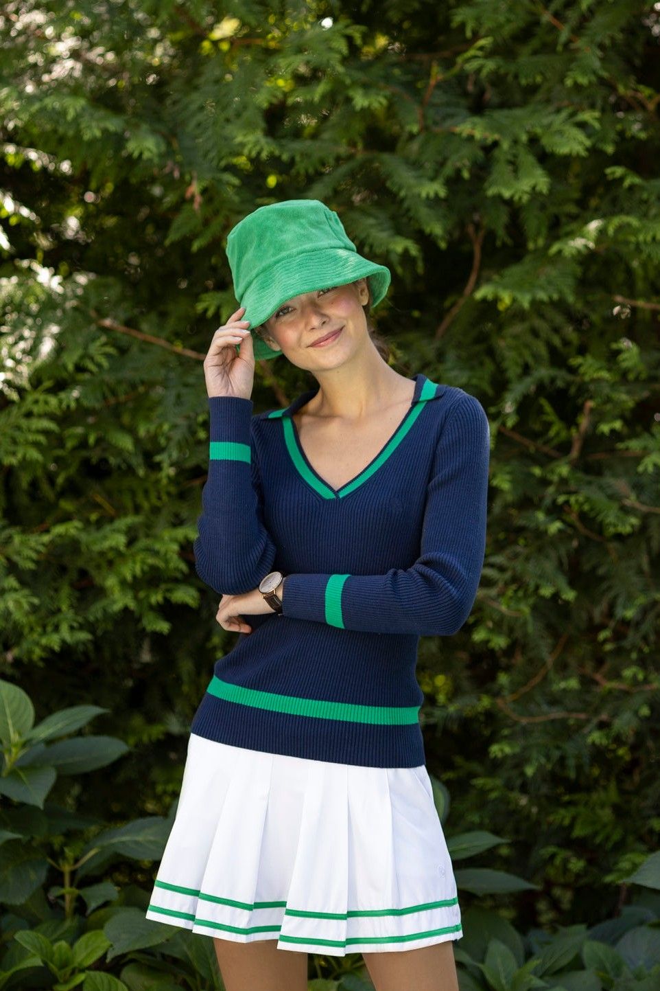 "I may not be an avid tennis player, but that doesn't mean I can't appreciate the chic preppiness of tennis-inspired fashion. This top, made from 100 percent cotton, is incredibly flattering, and its bright green accents easily light up any ensemble." – GU