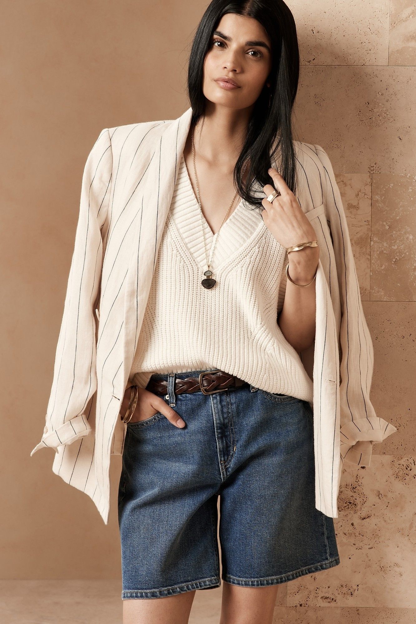 "I’m not quite ready to give up my WFH tees and sweatshirts, but this long sweater blazer allows me to be comfortable and stylish with almost everything I own. I typically layer it with relaxed tees, button-up shirts, or even a dress if I’m feeling fancy. In short: it helps me look (and feel) my best even when I’m not." – Deena Campbell, Beauty Director