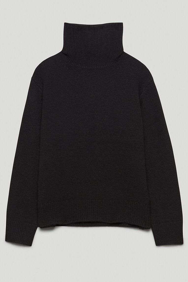 "I have three different versions of this turtleneck: in black, in gray, and in the non-cropped version. It's truly the do-anything sweater: form-fitting enough to wear to a formal event, comfy enough to wear to brunch, professional enough to wear to work. The material is thin and breezy enough to wear in the spring, summer, and fall, but be warned: This is not a winter sweater, unless you layer a thermal underneath (and you know I have)." – Jenny Hollander, Director of Content Strategy
