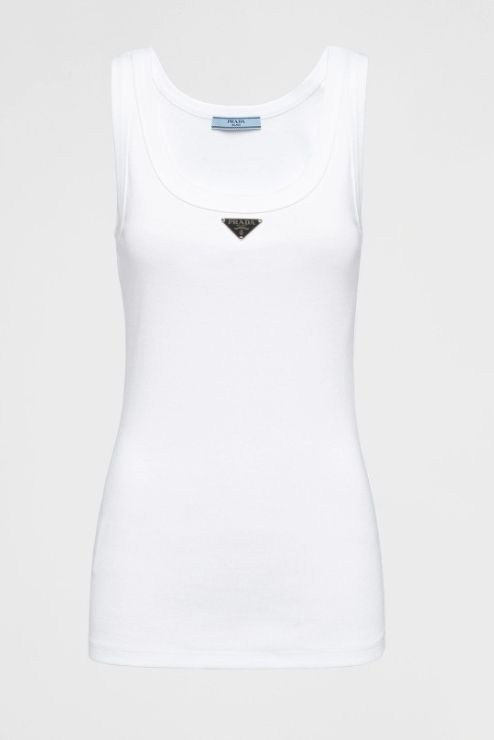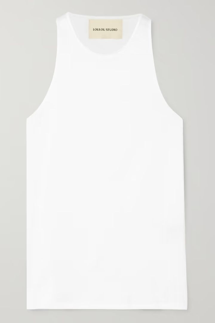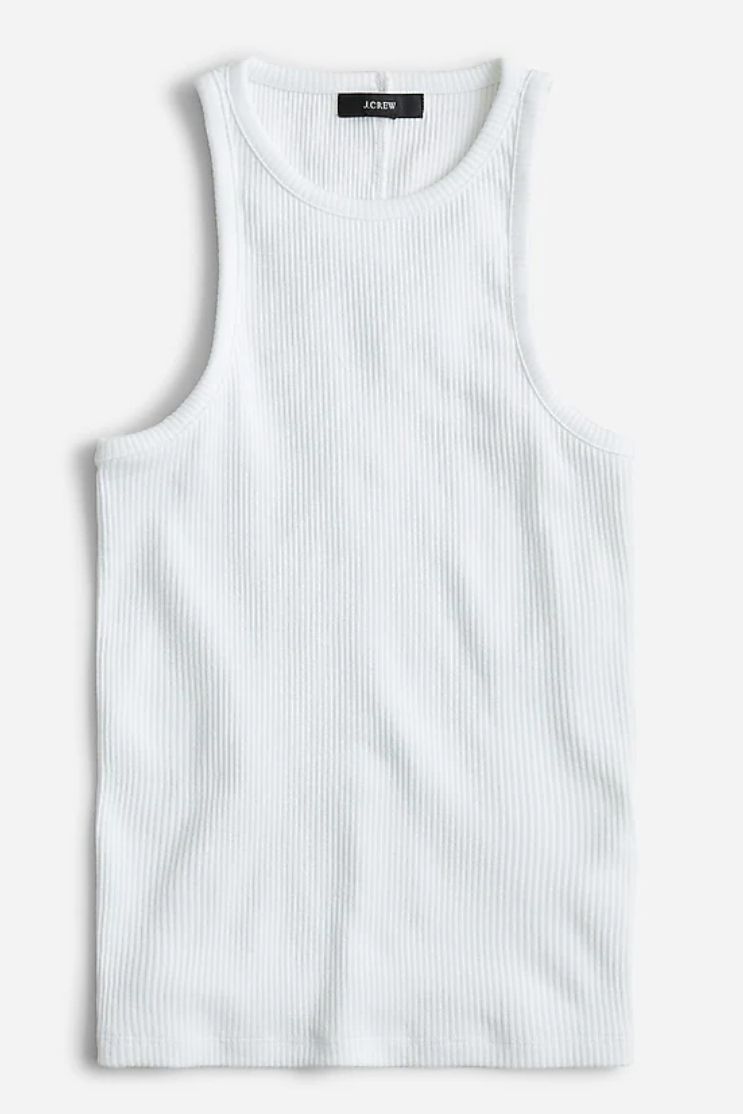 We sometimes believe less is more, especially when talking about one of the fall season's most simplistic trends— the little white tank top. Designers put their stamps of approval all over the wardrobe essential via house logos, but you don't have to spend a ton. The humble white tank comes in a variety of fabrics and price points.