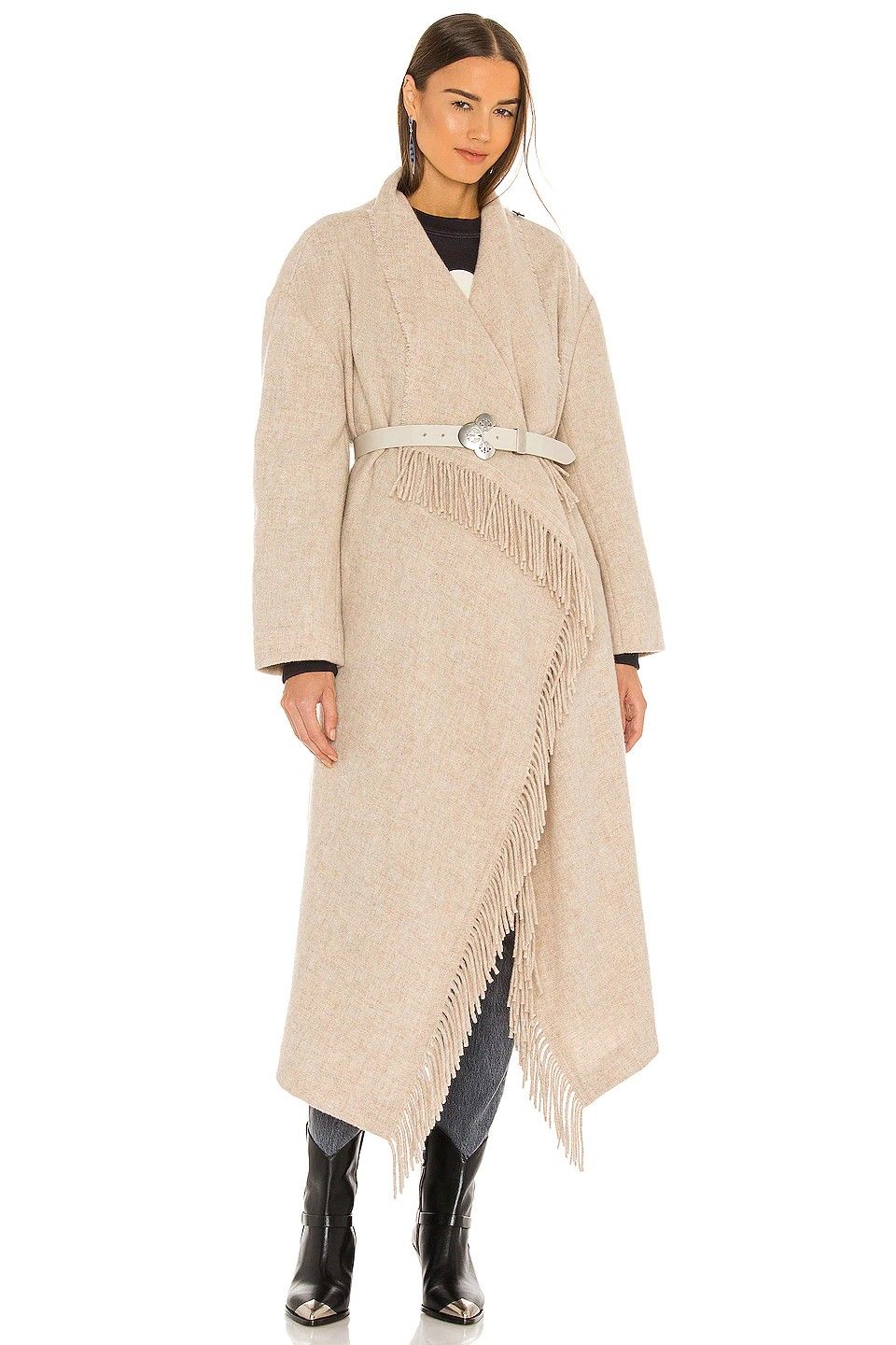 "Sure, temps might have hit the high-90s this week, but now’s the time to get a great deal on your outerwear for the colder seasons. I’d belt this mid-weight fringe jacket at the waist styled over midi skirts and dresses." — Sara Holzman, Style Director