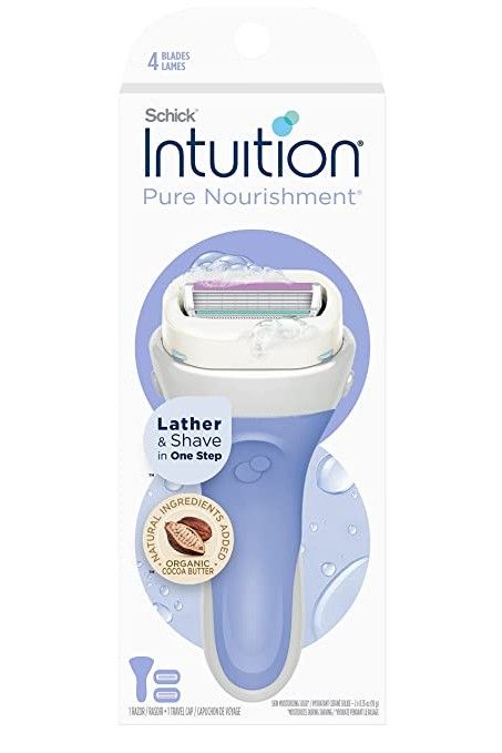 Cocoa butter makes this four-blade razor feel super nourishing on the skin. Available in three colors, this razor is outfitted with a pivoting head for a closer shave. You can even store it standing up so that takes up practically no space in your shower. Reviewers on Amazon say that the larger format takes some getting used to, but it's still one of their favorites.