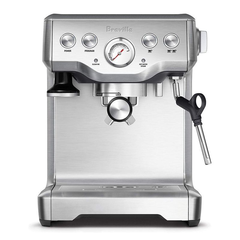Skip the line at your local coffee house and make your own smooth, aromatic coffee with the Infuser by Breville. This machine is balanced with both automatic and manual controls to make espresso making more approachable. Its pre-infusion feature and temperature control contributes to a balanced coffee extraction, so your coffee will have a consistently amazing taste throughout. With the touch of a button, you can control how much of a pour you want and how many shots you need to get you through the day. And because no good drink needs to be stirred, the micro-foam milk function creates a balanced milk-to-coffee ratio that's good to the last drop.
