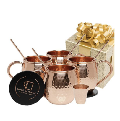 If you want to get as much as you can in one package, opt for this set. In addition to the four copper mule mugs, you'll also get four copper straws, a shot glass, four coasters, and a beautiful gift box to store it all in. The best part? It won't break your budget, either—the whole set comes im under $35.