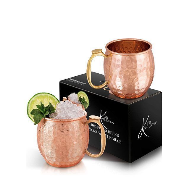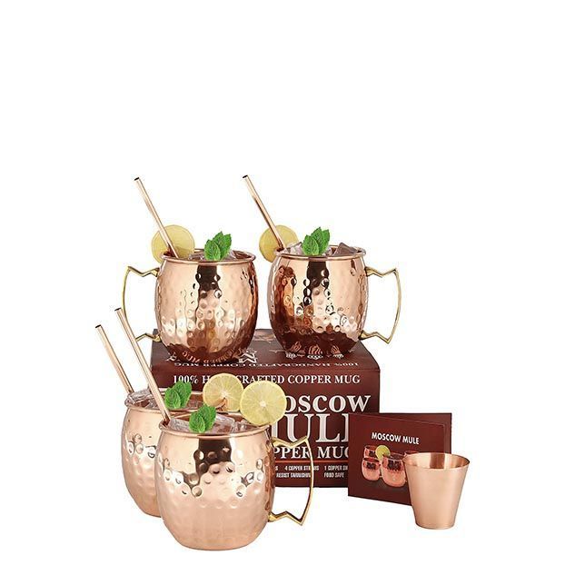 If you don't know where to start, you can't go wrong with these A29 Moscow mule mugs. You'll get four copper mugs, four copper straws, and a recipe book to help get you started. The 16 ounce capacity is perfect to hold your drink and ice cubes without spilling over.