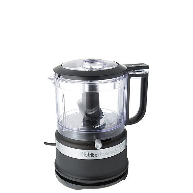 KitchenAid's compact chopper is a smart pick for little kitchens, dorm rooms, or those who tend to make small portions. The work bowl can hold 3.5 cups, and a handle and pour spout make serving easy. You have your choice of two speed options that can produce coarse or fine results.