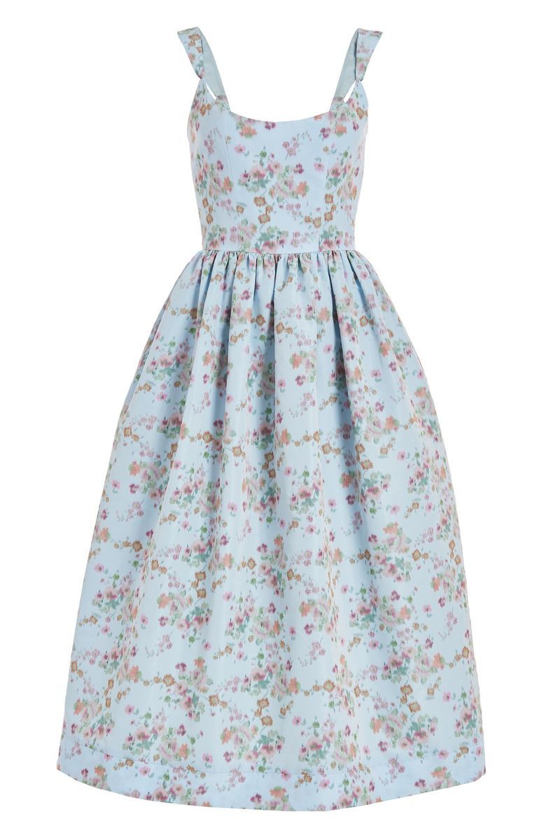 A Roksanda Ilincic coral dress that I pair with a Lizzie Fortunato necklace, Manolo Blahniks, and a pale blue Celine handbag.