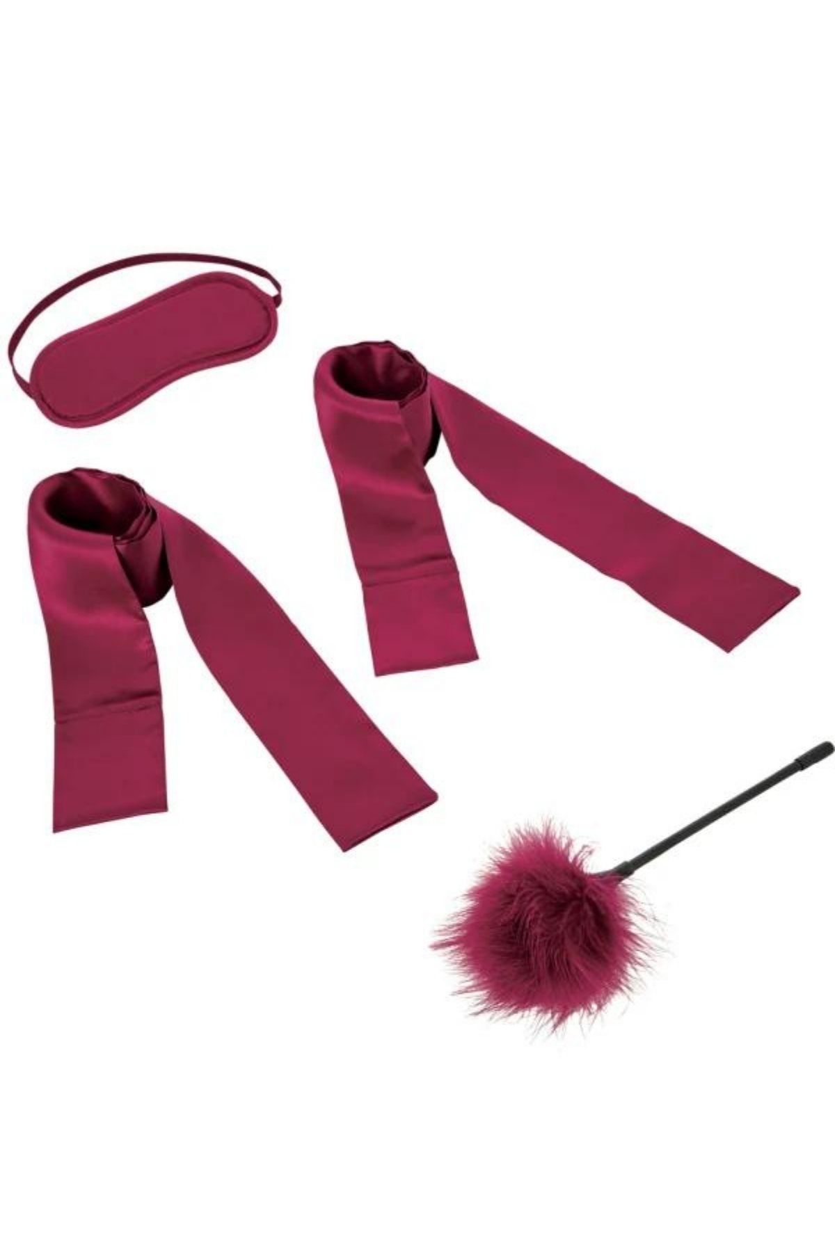 If you're looking to try out some light bondage but aren't looking to risk physical discomfort, consider this soft, stretch-to-fit satin blindfold and restraints set in "very sensual and sexy" maroon.