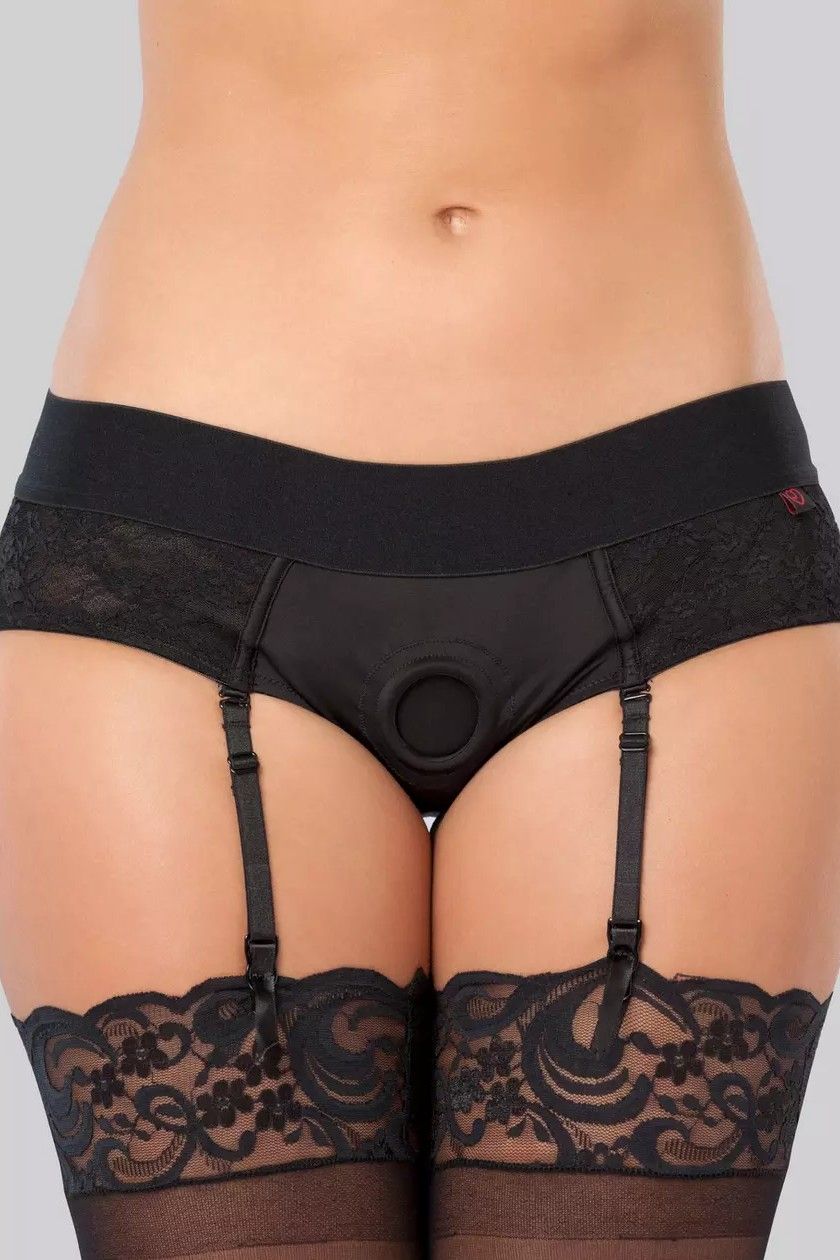 If you're not into the S&M look of most strap-on harnesses, opt for a delicate, lacy lingerie option like this one from Lovehoney, which one very satisfied customer said "felt like lingerie but naughtier."