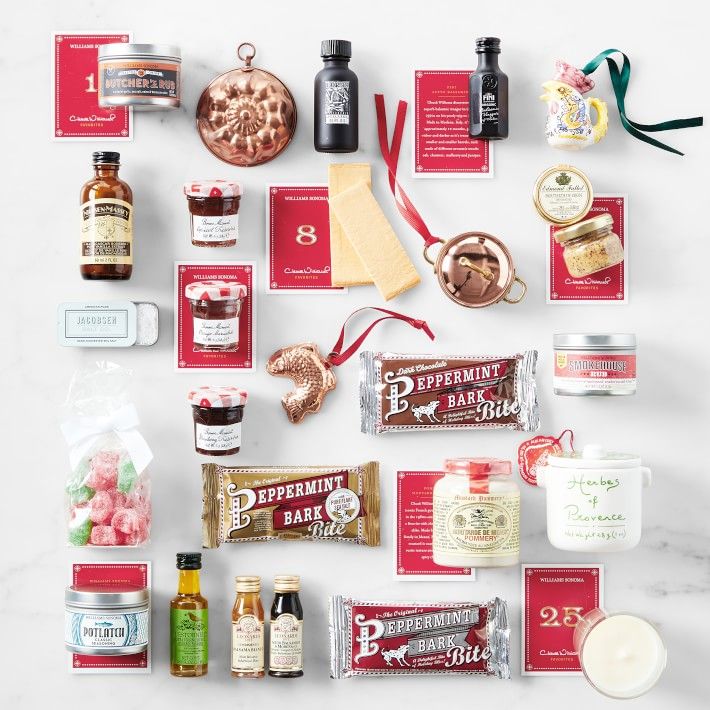 Foodies will be obsessed with Williams Sonoma’s chic advent calendar, which is filled with everything from ornaments to peppermint bark bites to spices that make excellent stocking stuffers.