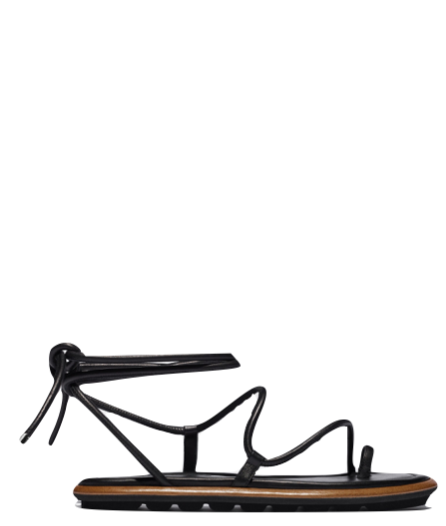 The Susan Tread sandal, one of the newest additions to Parsons' collection, is yet another way to integrate her barely there footwear designs into your late summer/early fall rotation. Versatile and ultra-comfortable, the Susan is constructed with an intentionally thick, recycled tread rubber sole—ensuring comfort and durability. Nappa cording can be fastened around the leg or tied around the ankle.
