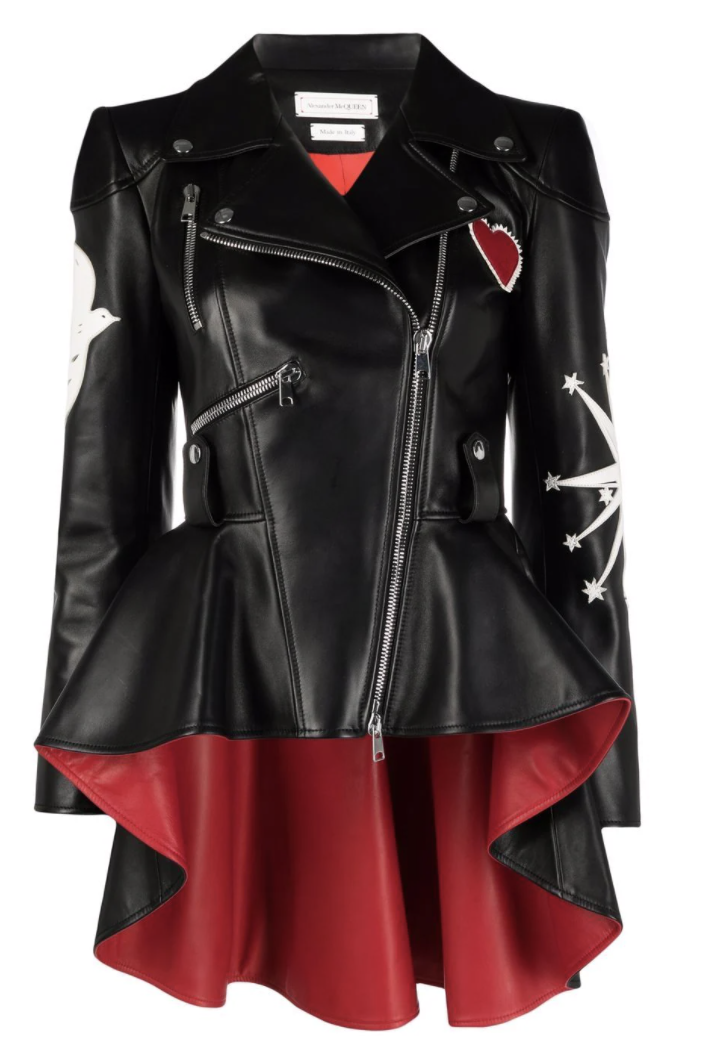 I love Alexander McQueen—my favorite piece is their leather peplum jacket. I can pair it with everything: a pencil skirt, black pants, boots. I just bought a new McQueen suit. The jacket has jeweled heart sleeves on them. I'm getting excited about shopping again.