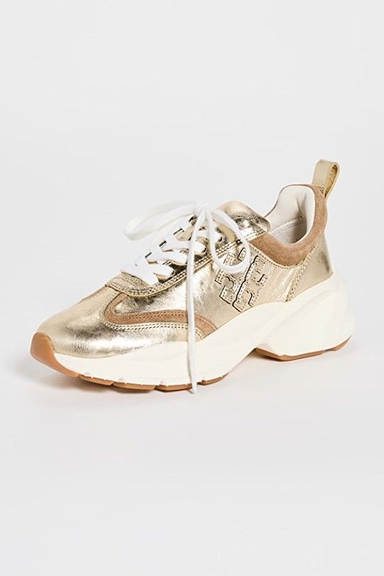 Go for the gold with these sneakers from Tory Burch. Perfect for updating a jeans and a tee outfit, these metallic sneakers are best-in-show.