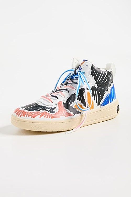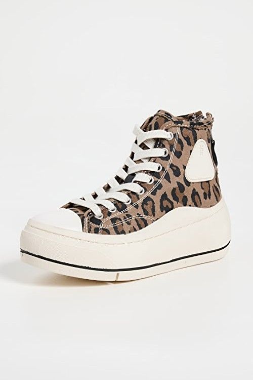 Whereas traditional chunky sneakers—ones with enlarged details like an oversized rubber sole—were popular in the past, a more retro-inspired breed has taken over in 2022. “The old-school aesthetic is back and better than ever – think classic high-tops and retro kicks,” says Caroline Maguire, the Fashion Director at Shopbop (opens in new tab). “I am loving how designers are updating this vintage-inspired style with modern prints and bold colors.”