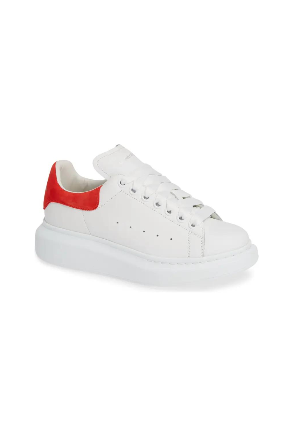 If you’re looking for a chunky white sneaker with a little something special, consider this pair from Alexander McQueen. The backs of each pair are outfitted with a different pop of color.