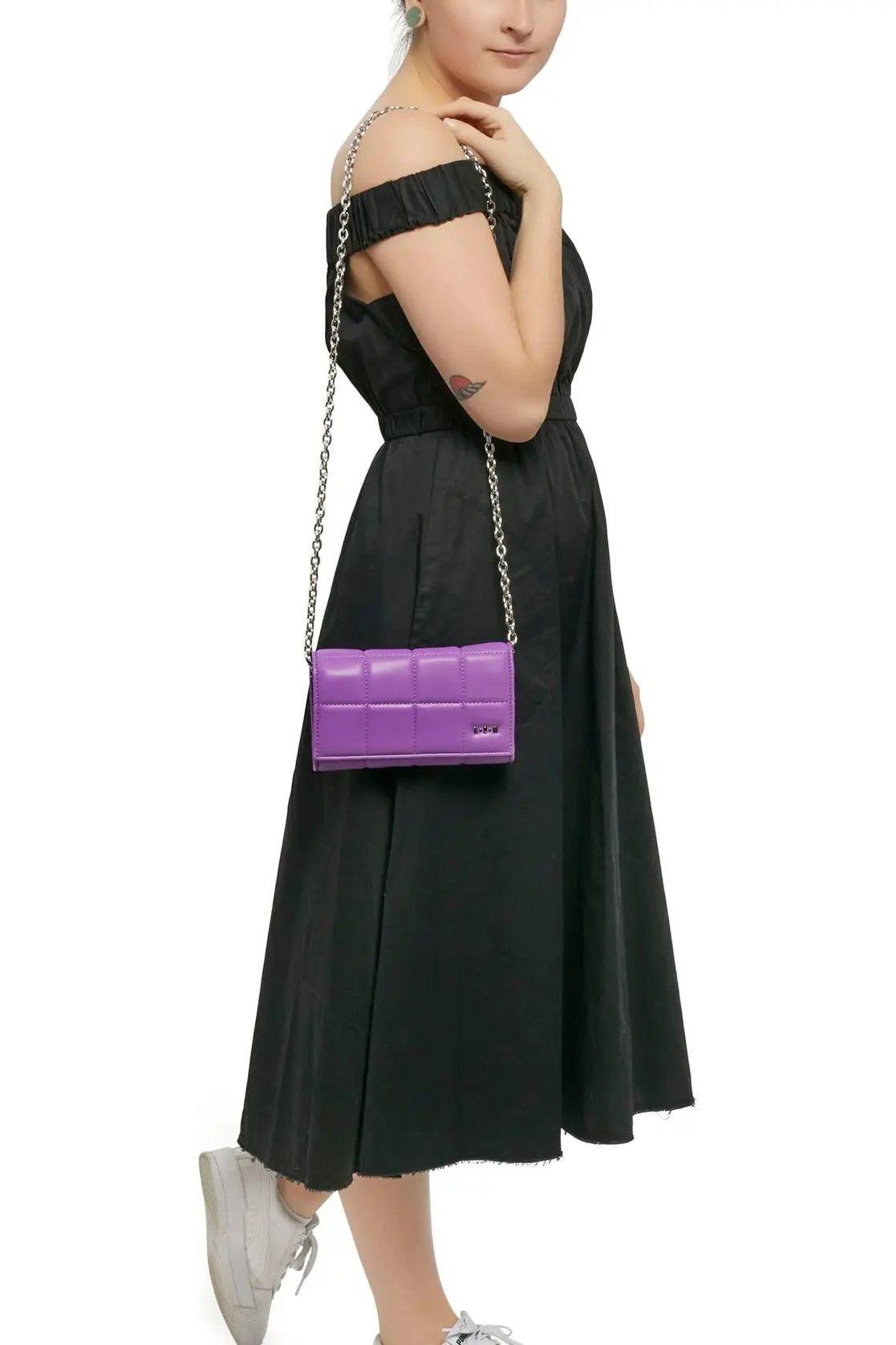 This vegan leather wallet-on-a-chain from HOUSE OF WANT is great for holding the essentials. It retails for only $68 and comes in a few fun colors like bright purple, apricot pink, and a black-and-white gingham print.